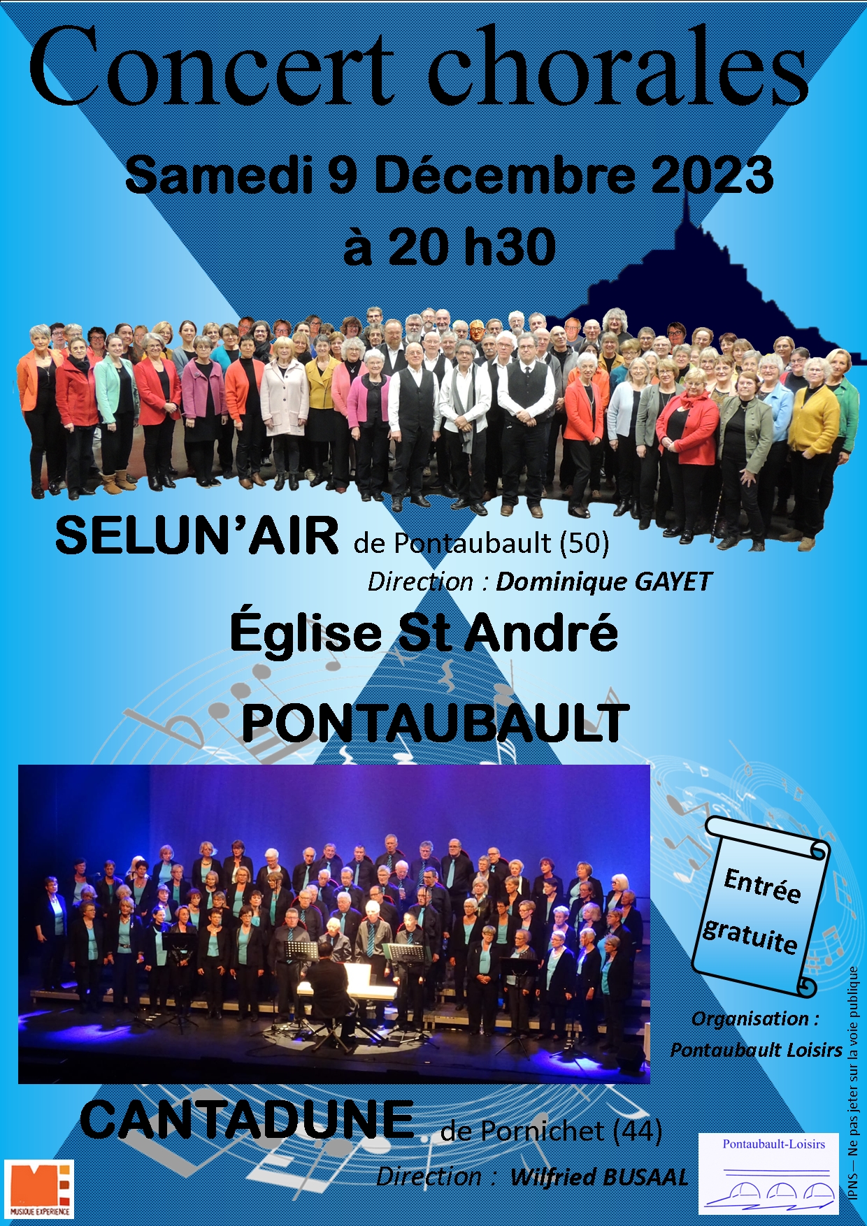 Concert Chorales Sélun’Air (Pontaubault) et Cantadune (Pornichet 44)