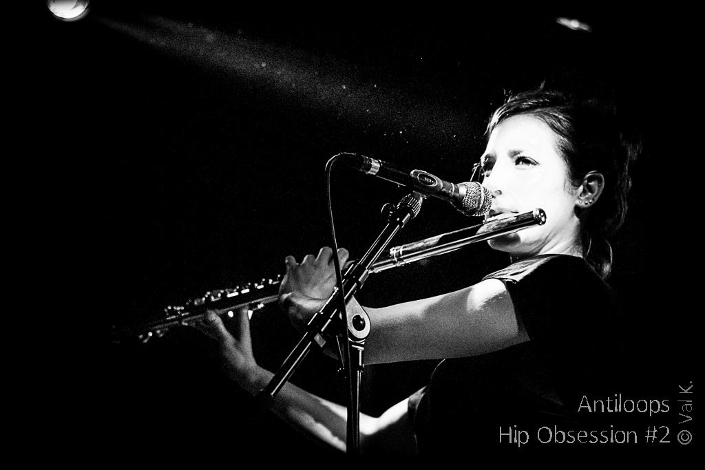 A l’écran, des courts-métrages burlesques. Au pied de l’écran, sur scène durant la projection, micro en main, Ludivine Issambourg pratique le beatboxing, discipline de la culture hip-hop : la musicienne imite avec la bouche des percussions, des pulsations, des bribes de mélodies. Aux claviers Nicolas Derand accompagne la rythmique comme si la partition des deux musiciens s’écrivait directement sous les yeux des spectateurs. Plaquant les premières lignes mélodiques sur sa flûte traversière, Ludivine poursuit le rythme au beatbox en soufflant dans sa flûte… tout en jouant simultanément la mélodie ! Le beatbox devient flûte-box.