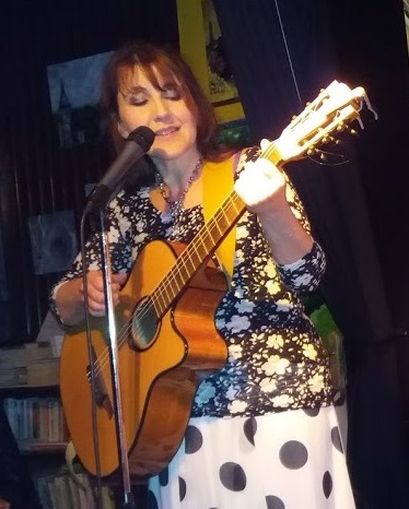 Une chanteuse avec sa guitare, auteure/compositrice/interprète.