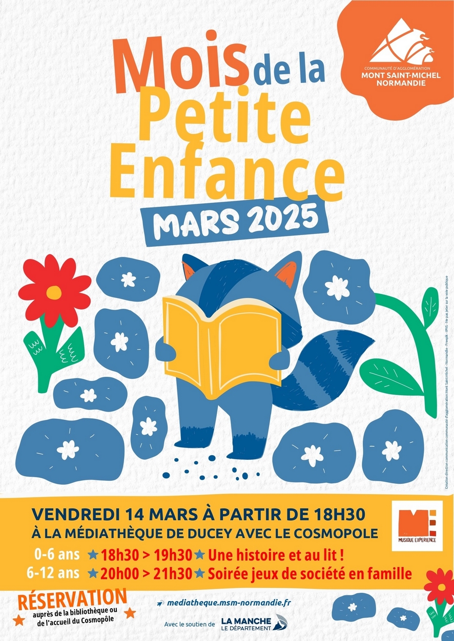 Mois de la Petite Enfance vendredi 14 mars à la médiathèque de Ducey-les Chéris avec le Cosmopôle Une histoire et au lit! de 18h30 à 19h30 pour les 0-6 ans Soirée jeux de